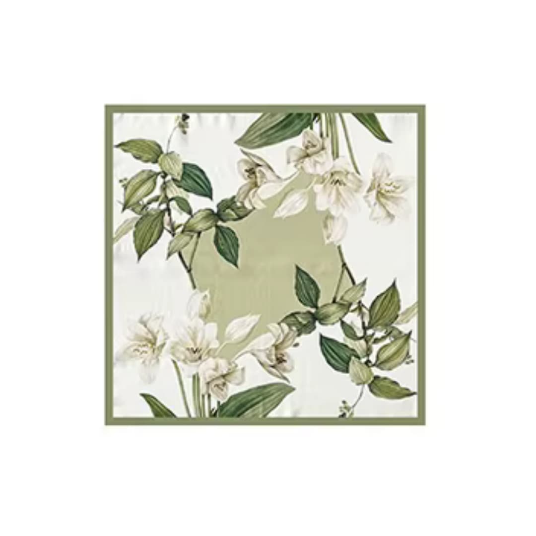 100% siidisall 53x53cm – 05 – Eksklusiivne 100% siidist kaelarätik on täiuslik aksessuaar, mis lisab igale riietusele luksuslikku sära ja naiselikku pehmust. Siidi loomulik läige ja õrn tekstuur muudavad selle kandmise eriti meeldivaks, pakkudes nii mugavust kui ka stiili.