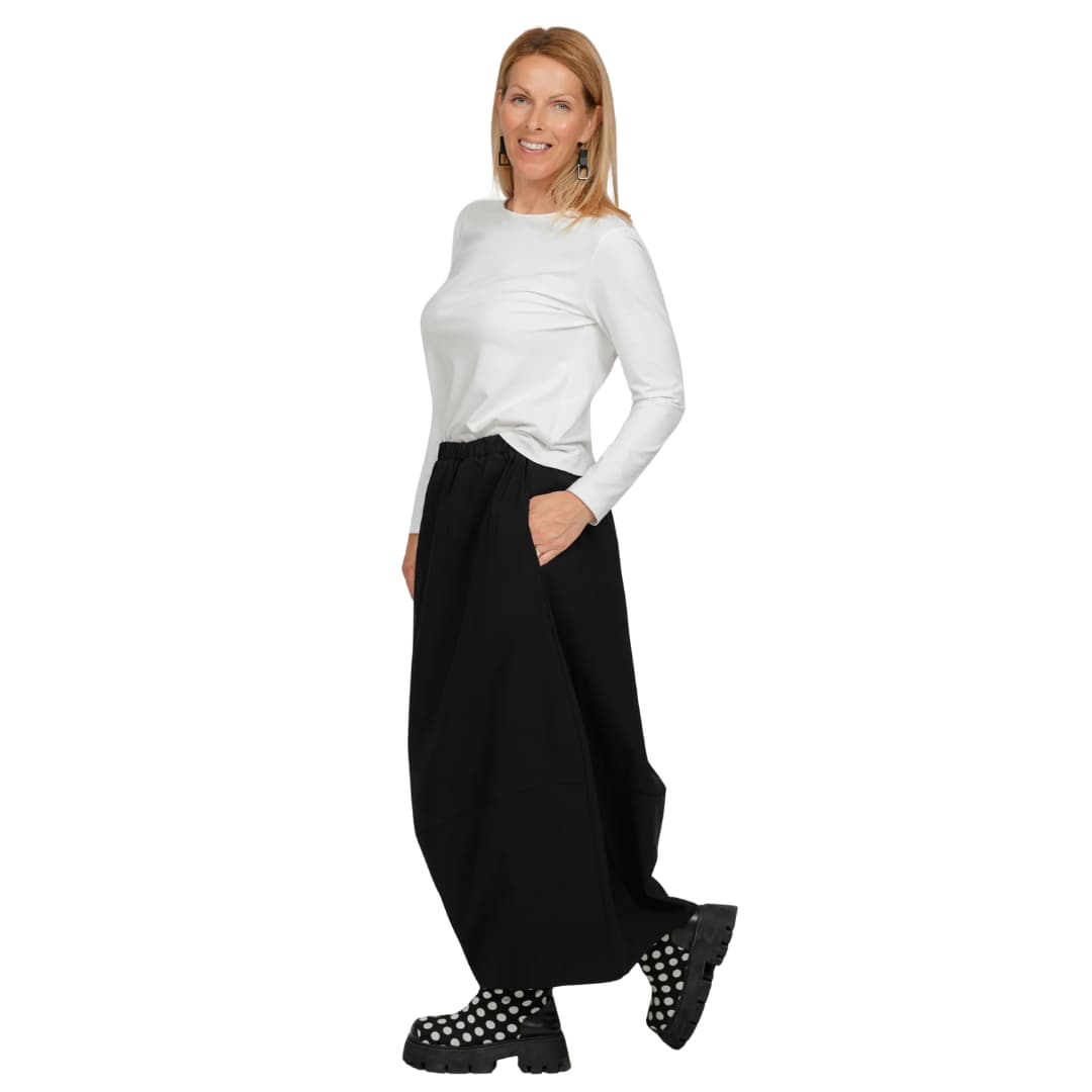 JustMust pikk seelik Mite – Must – Seelik, mis liigub Sinuga kaasa igal sammul, lisades graatsiat ja stiili igasse liigutusse. See tulbilõikeline seelik pakub just seda – mängulist elegantsi koos igapäevase mugavusega. Seeliku mugav kummiga vöökoht sobitub valatult iga figuuriga. Valmistatud mugavat ja praktilisest viskooskangast, mis tagab vastupidavuse ja lihtsa hoolduse, See seelik saab kindlasti Sinu uueks lemmikuks. Selle klassikaline toon teeb sellest ideaalse kaaslase nii kontoris kui ka õhtusel väljasõidul, olles piisavalt mitmekülgne, et sobituda paljude JustMusta pluuside ja topidega.