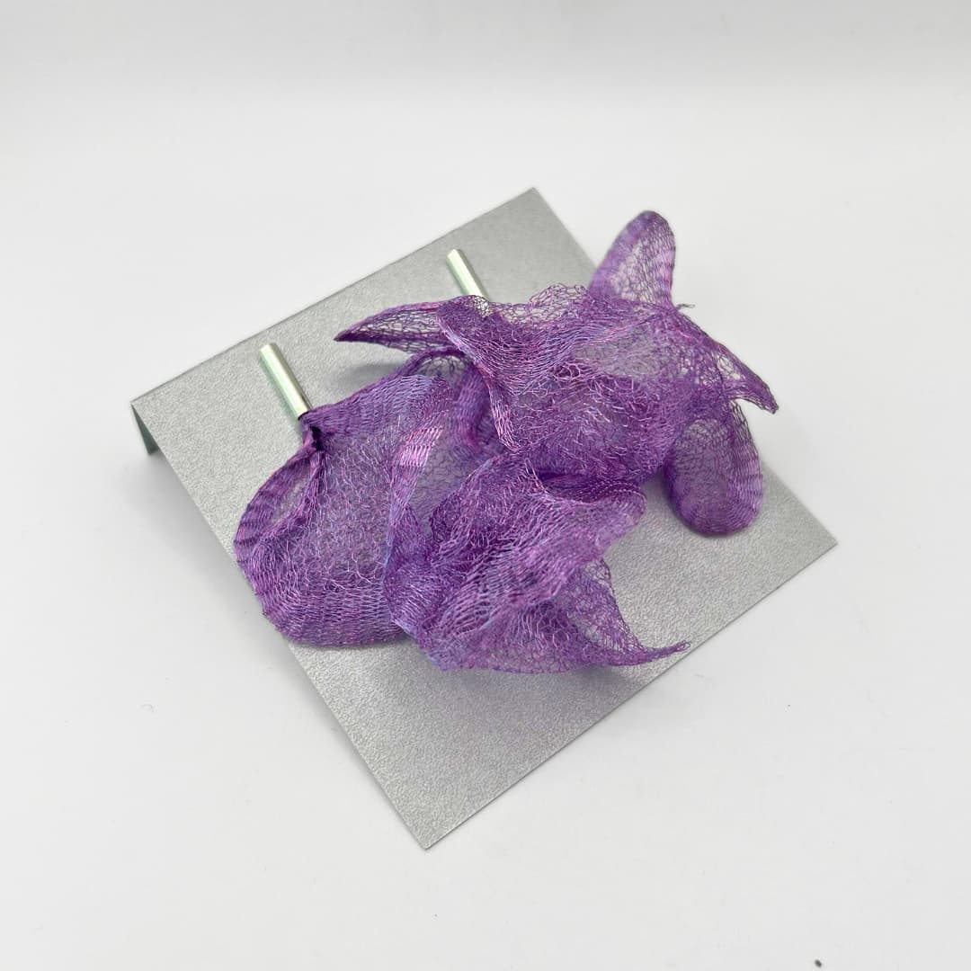 Kõrvarõngad on valmistatud läbikumavast, võrkjast materjalist, mis on vormitud lainetavaks ja orgaaniliseks kujuks – justkui merevetikad või veealused lained. Toon on sügav heledam lilla, mis püüab pilku, kuid jääb samas elegantseks ja rahulikuks.