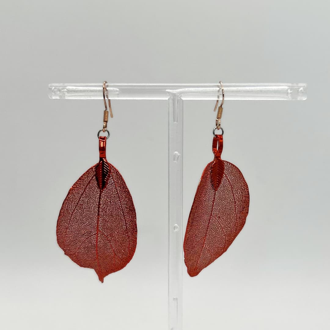 Kõrvarõngad – Orange Leaf – Kõrvarõngad on valmistatud ehtsatest lehtedest. Kasutatud on spetsiaalset meetodit, et anda neile ilus metallkate. Kuna tegemist on ehtsate lehtedega, pole ükski toode täpselt ühesugune. Seega on iga ostetud ehe unikaalne! Kõrvaõngad on ideaalne romantiline kingitus või moeaksessuaar neile, kes soovivad väljendada oma individuaalsust ja sidet loodusega.