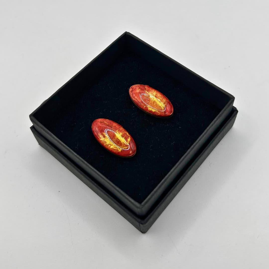 Liura ovaalsed kõrvarõngad – Punane-kollane – Kaunid, säravad ja pilkupüüdvad kõrvarõngad. Kõrvarõngad on kerged ning need on valmistatud Eestis.
