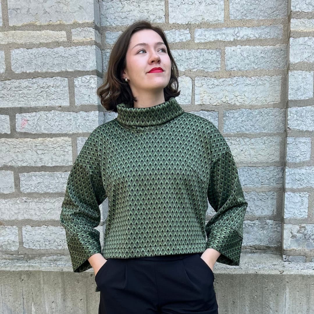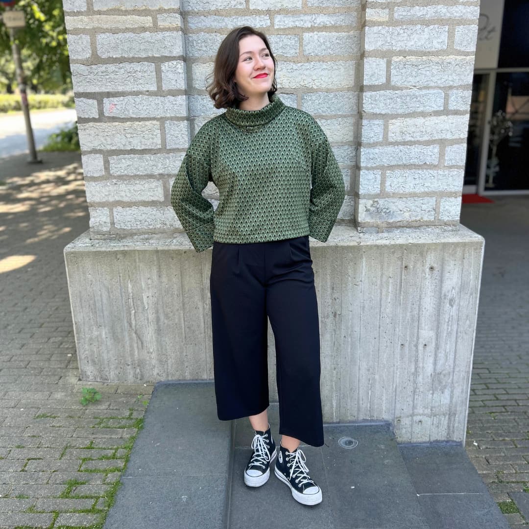 Moniik pluus – Roheline – Stiilne ja mugav kõrge kraega pluus, mille silmapaistev geomeetriline muster ning roheline värvitoon toovad igapäevaellu elegantse nüansi. Pluusil on avarad 3/4 pikkuses varrukad ning sirge lõige, mis sobib hästi nii kontorilookiks kui ka vabaajastiiliks.