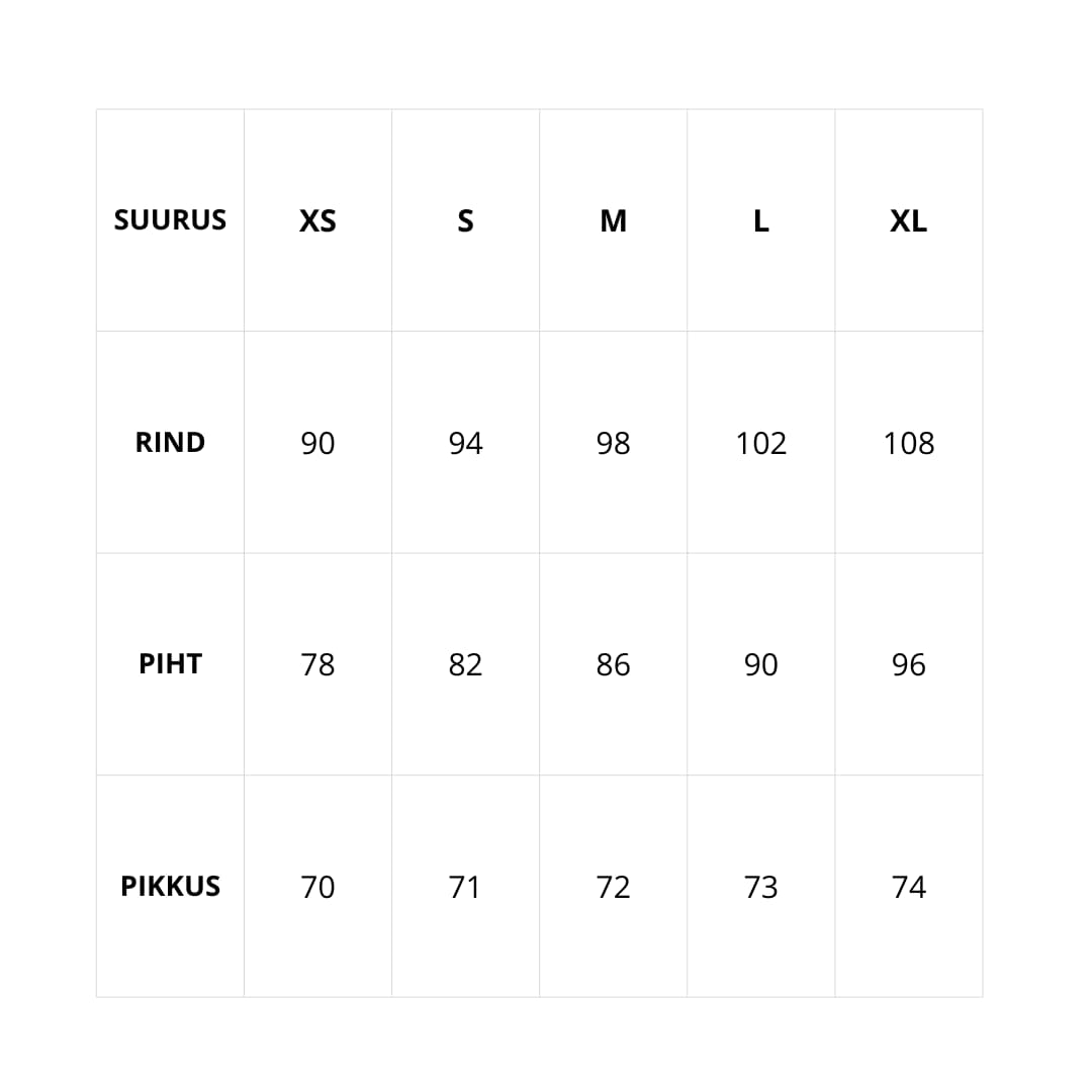 - Pealiskangas: 95% polüester, 5% elastaan