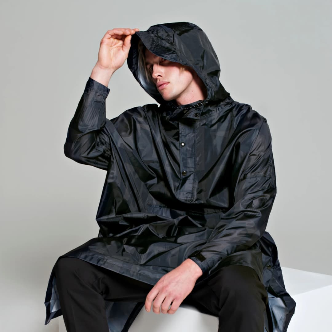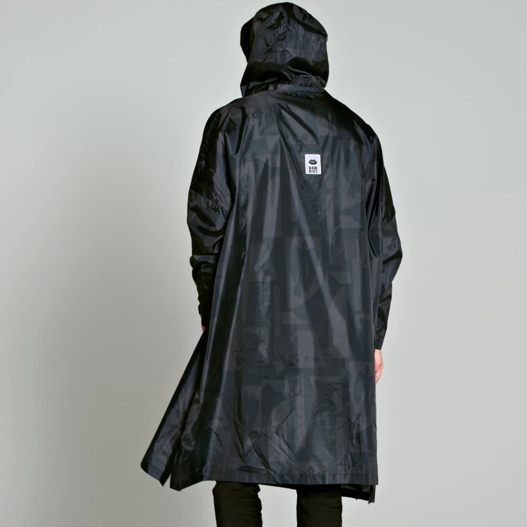 Rainkiss vihmapontšo – Back to Black Art – Kõik Rainkissi vihmarõivad on valmistatud GRS (Global Recycling Standard) sertifikaadiga taaskasutatud polüestrist. See erineb oluliselt uuest (neitsi-)polüestrist. Erinevalt polüestrist, mille tootmisel kasutatakse naftakeemilisi tooteid, palju vett ja millel on üsna mürgised kõrvalsaadused, kasutatakse taaskasutatud polüestri puhul toorainena ümbertöödeldud PET-i (pudeleid). Seda taaskasutatakse, et see ei satuks prügilatesse ega ookeani.
