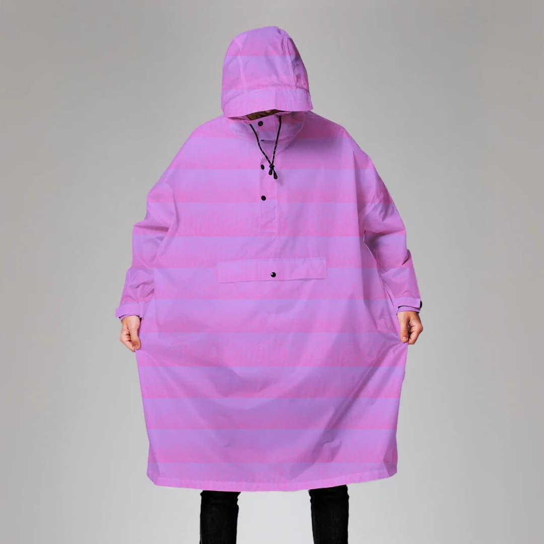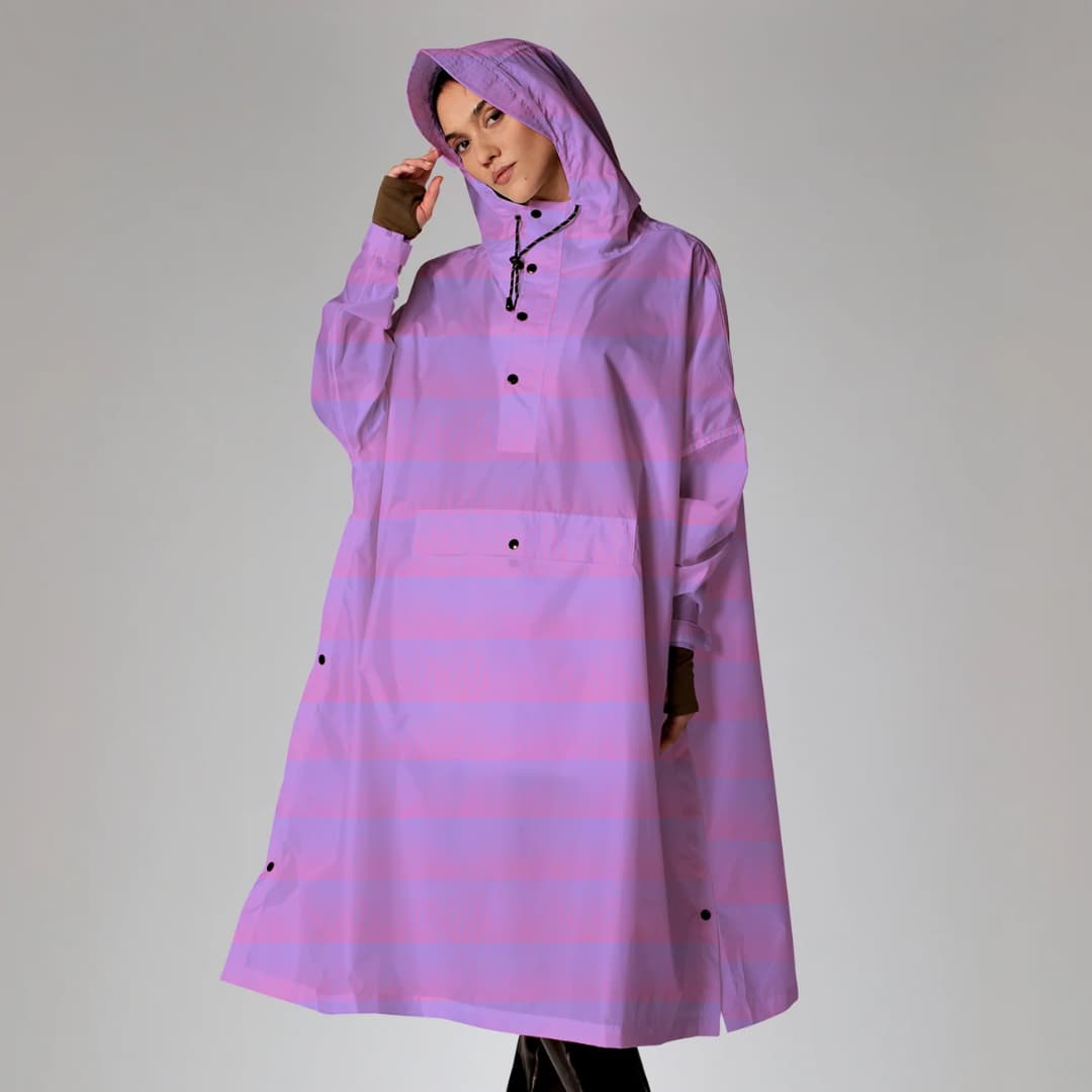 Rainkiss vihmapontšo – Seeing Stripes – Kõik Rainkissi vihmarõivad on valmistatud GRS (Global Recycling Standard) sertifikaadiga taaskasutatud polüestrist. See erineb oluliselt uuest (neitsi-)polüestrist. Erinevalt polüestrist, mille tootmisel kasutatakse naftakeemilisi tooteid, palju vett ja millel on üsna mürgised kõrvalsaadused, kasutatakse taaskasutatud polüestri puhul toorainena ümbertöödeldud PET-i (pudeleid). Seda taaskasutatakse, et see ei satuks prügilatesse ega ookeani.