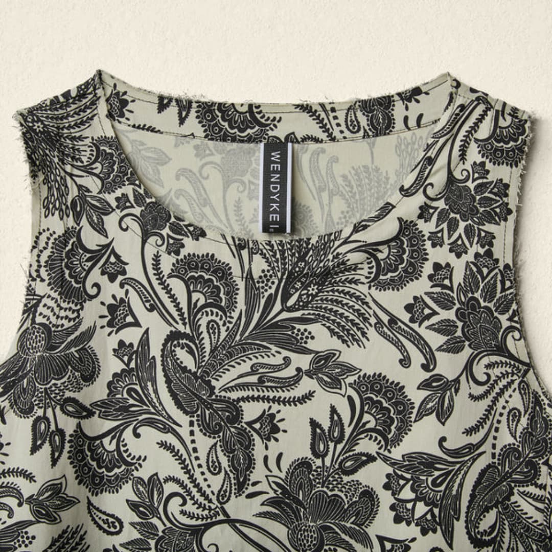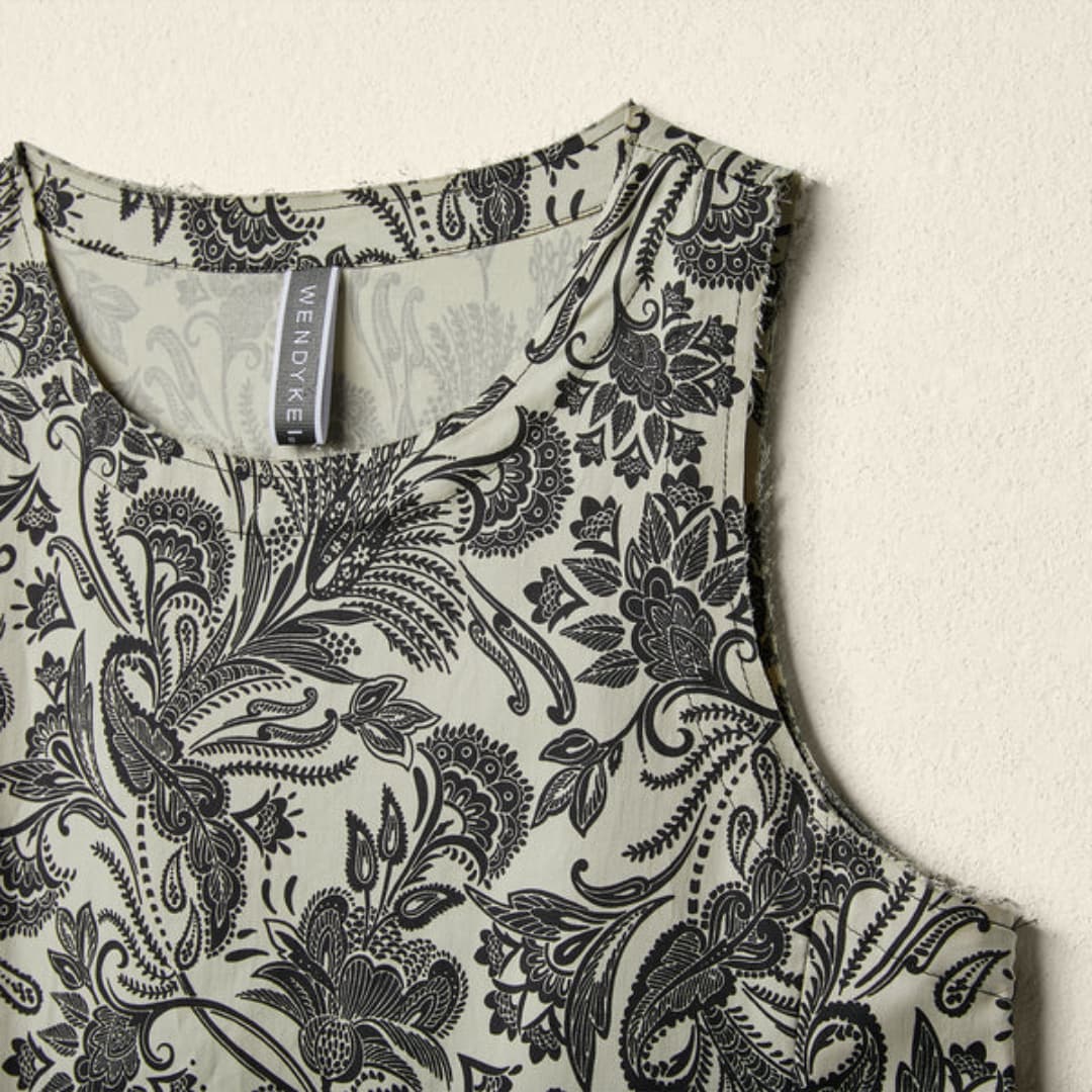 Kleidi varrukateta lõige ja kergelt taljesse töödeldud siluett rõhutavad figuuri, samas kui pehmelt langev kangas tagab mugavuse ja liikumisvabaduse. Eriti eriliseks muudavad selle mudeli dekoratiivsed ruumilised lilleõied kleidi esiosal, mis lisavad sügavust ja luksuslikku aktsenti.