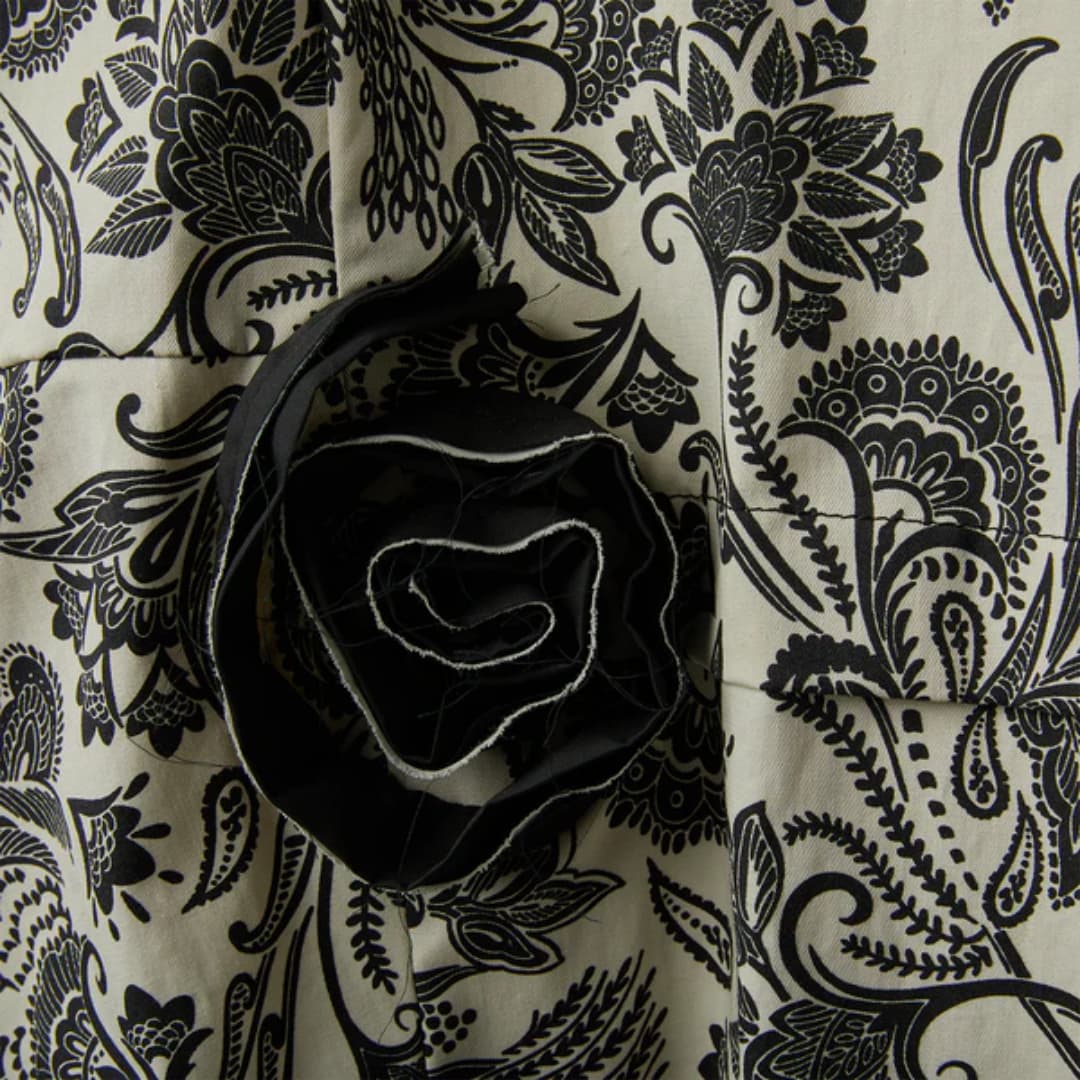 Roosidega kleit – Must-valge – See elegantne ja pilkupüüdev kleit ühendab klassikalise mustvalge mustri ning naiselikud detailid. Kaunis lilleline ornament loob ajatu ja šiki ilme, mis sobib suurepäraselt nii pidulikumateks sündmusteks kui ka stiilseks igapäevaseks kandmiseks.