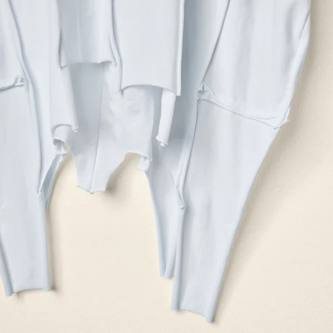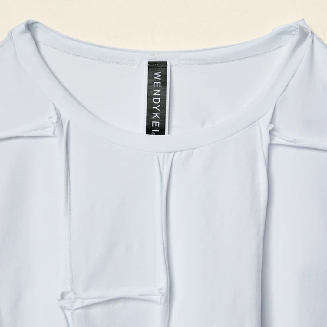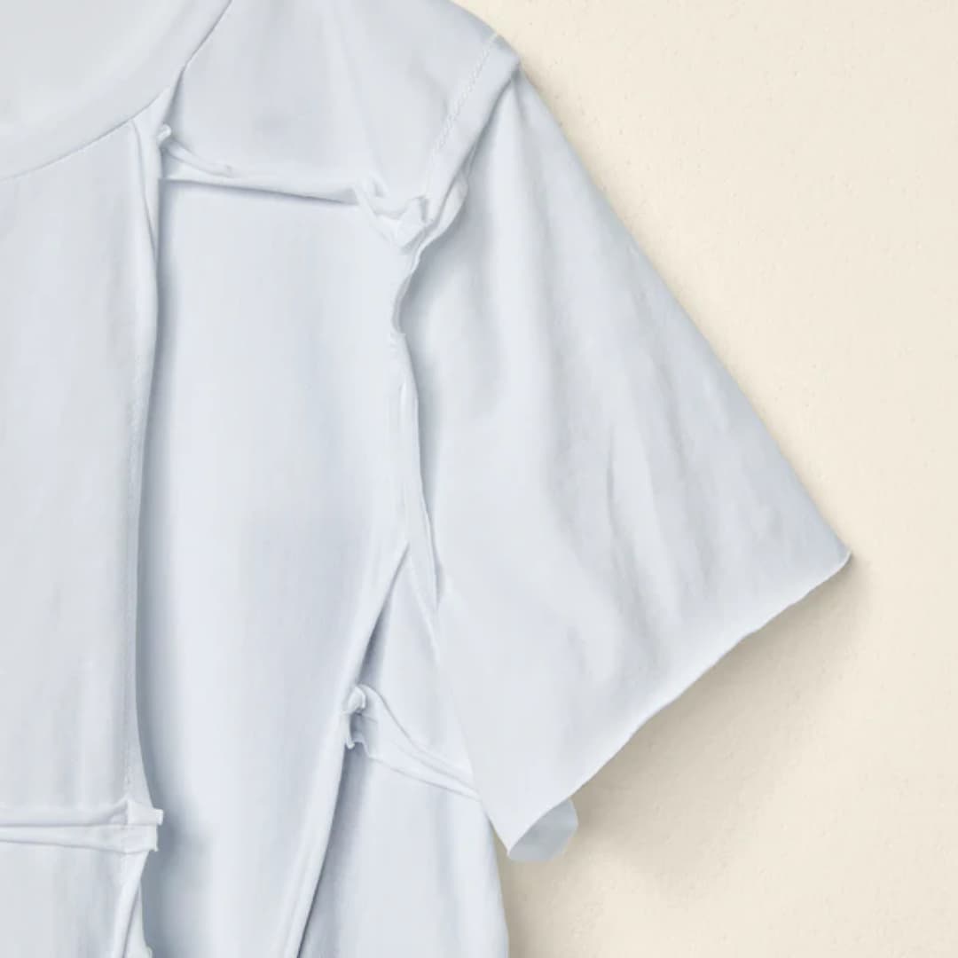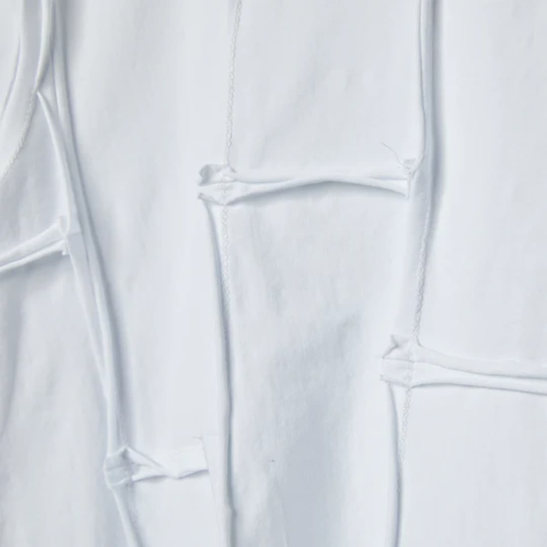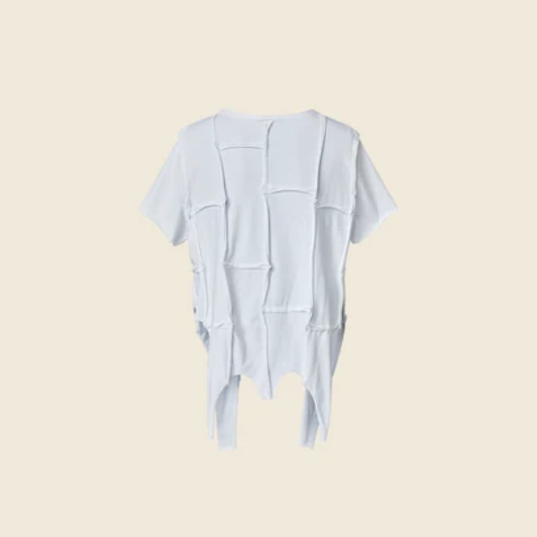 Pluusi eripäraks on reljeefne, lapiline tekstuur, mis lisab visuaalset sügavust ja unikaalsust. Vabalt langev lõige ning asümmeetriline alläär loovad mängulise ja trendika silueti, mis sobib erinevate kehatüüpidega. Lühikesed varrukad ja minimalistlik kaelus tagavad ajatu välimuse, mida on lihtne kombineerida nii teksade, pükste kui ka seelikutega.