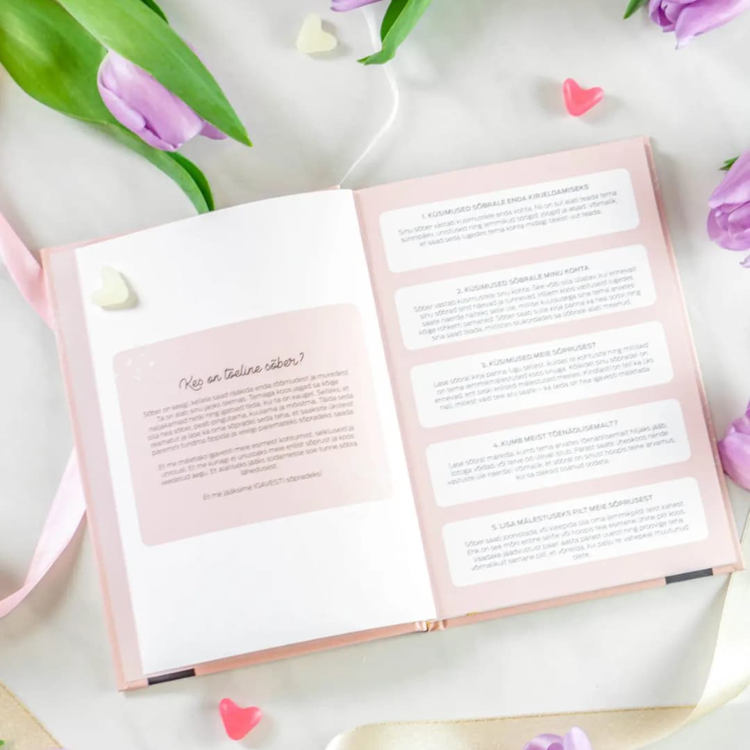 Sõbrannad saavad vastata küsimustele nende sõpruse kohta, leida kumb teeb tõenäolisemalt naljakaid tegusid nind arvutada välja ka sõpruse skoori. Lisaks veel palju muid harjutusi ja soovitusi ühisteks seiklusteks.