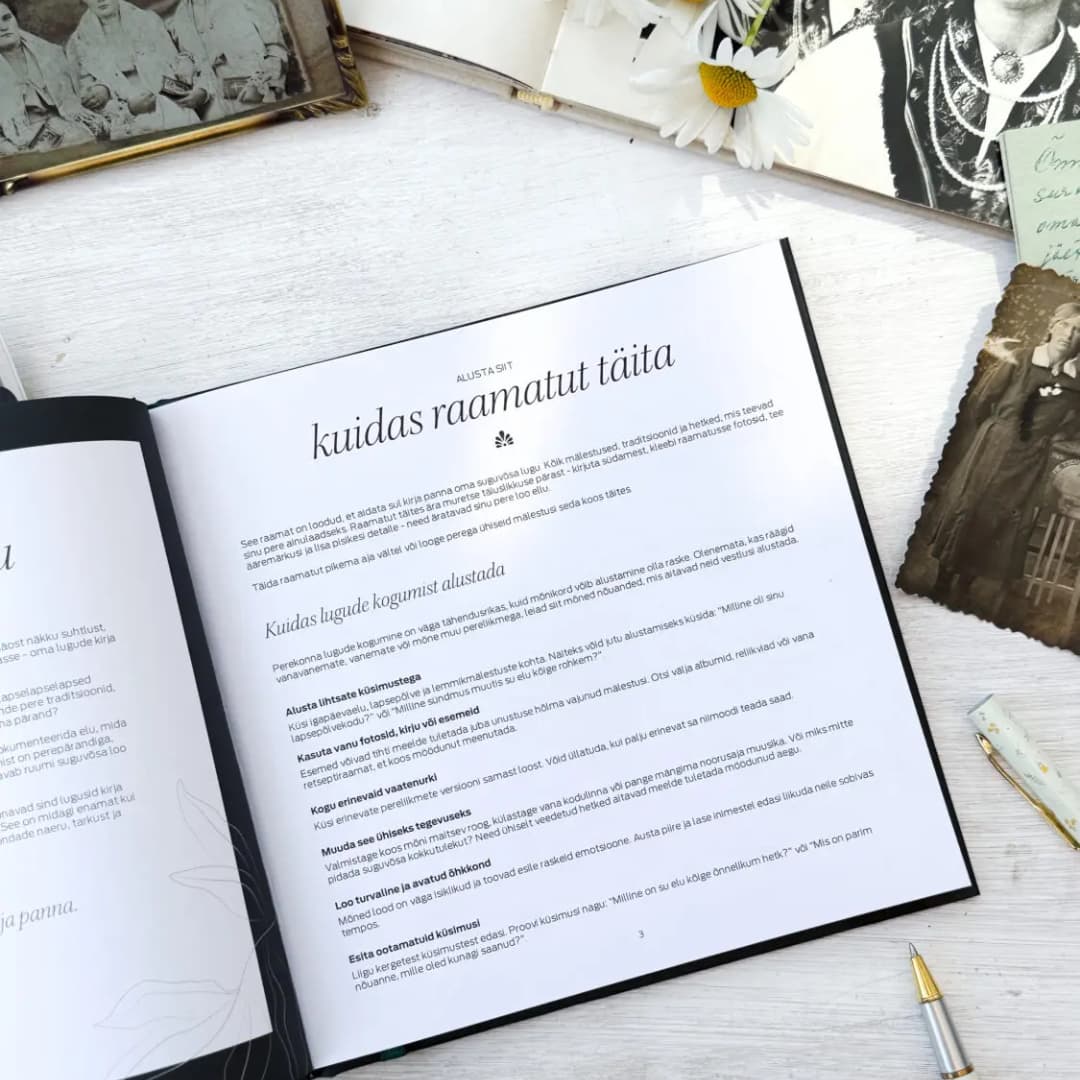 “Minu suguvõsa lugu” on rohkem kui lihtsalt täidetav raamat. See on koht, kuhu saad jäädvustada mälestusi, õpetusi ja nalju. Küsimused aitavad sul meenutada ja kirja panna elu, mida sinu pere on elanud. Lisa fotosid, tee ääremärkusi ja kirjuta südamest. Just nii sünnib lugu, mida tulevased põlved saavad lugeda ja edasi kanda.