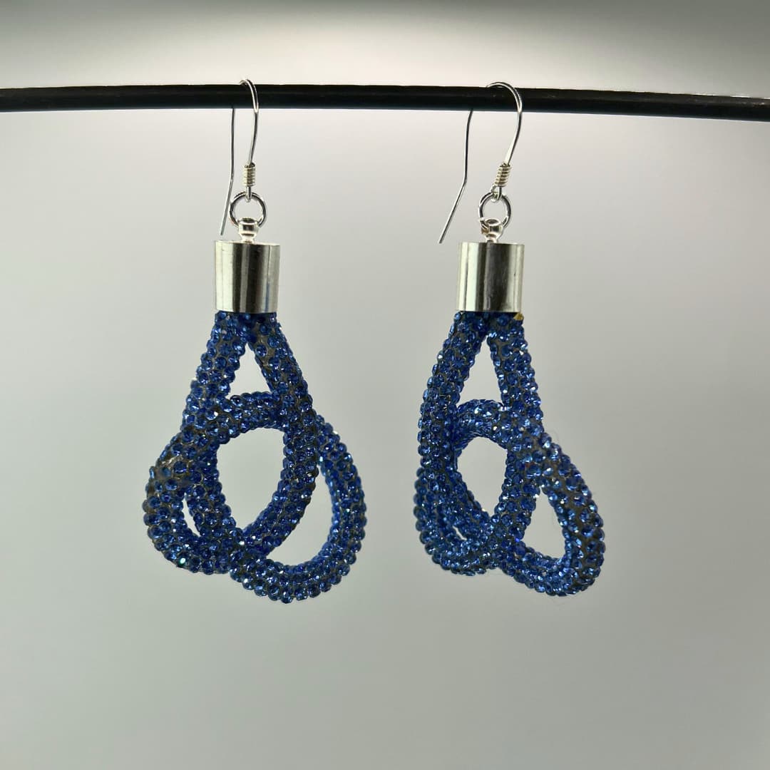 Soft Geometry kõrvarõngad – 19 – Käsitsi valmistatud võrgustruktuur loob skulpturaalse, kuid samas kerge ja liikuvad vormi, mis muutub koos valguse ja kandja liikumisega.