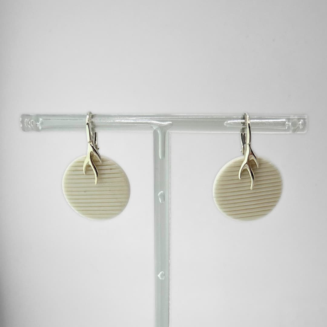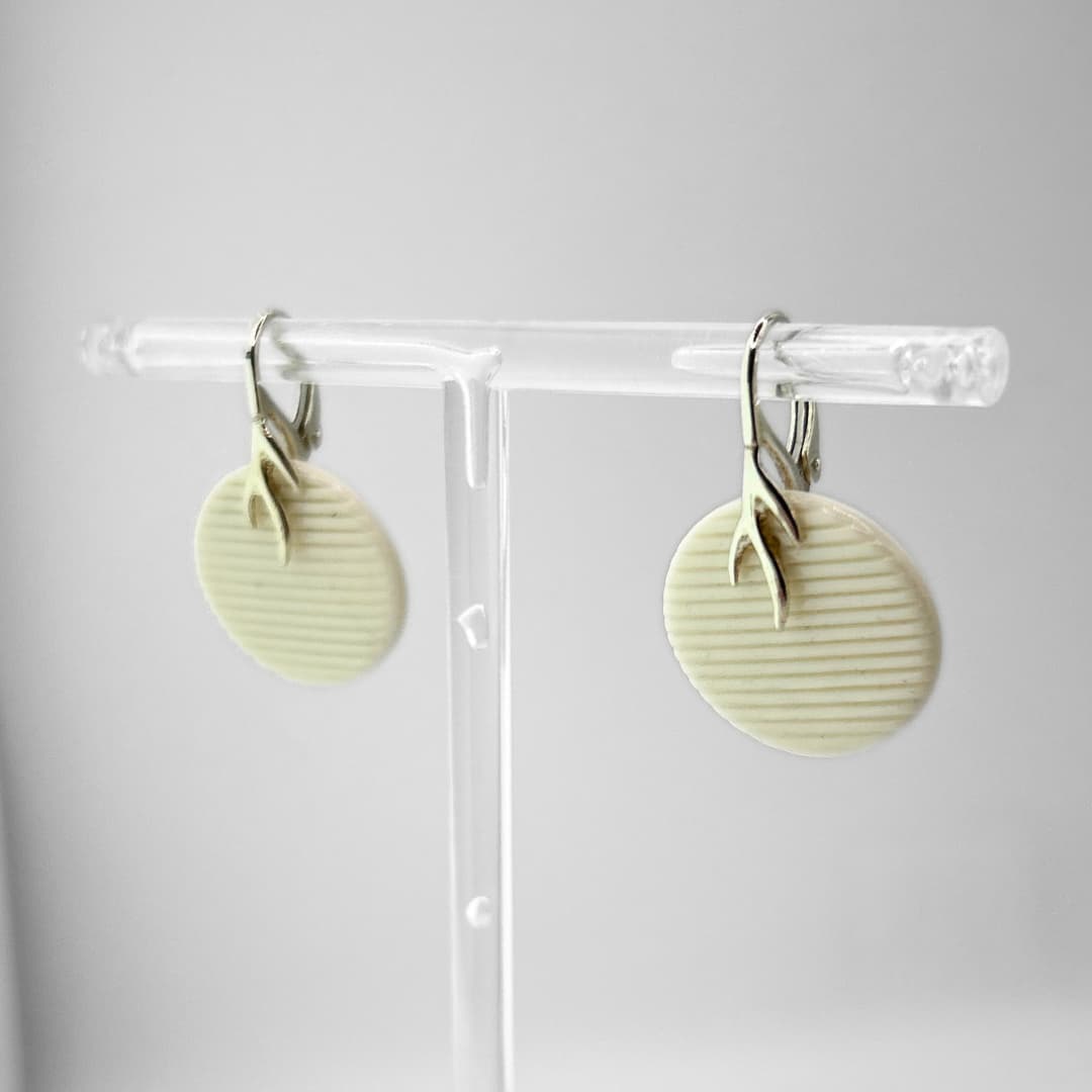 Stuudio Ankoopi kõrvarõngad – Valged rippuvad ringid – Keraamilised käsitööna valmistatud kõrvarõngad, millel on 925 hõbe või kullatud hõbe kinnised.