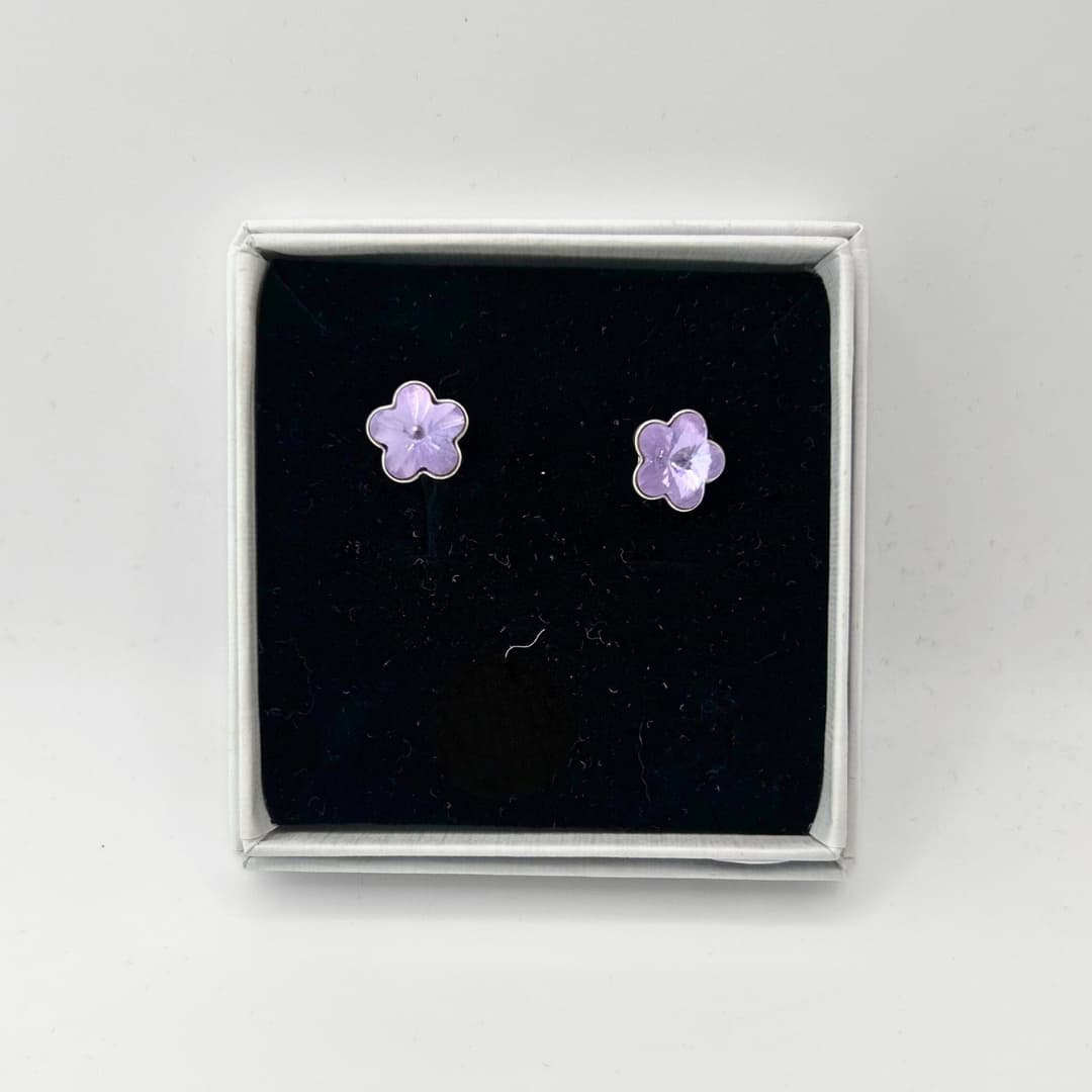 Swarovski kristallidega kõrvarõngad Flowers – Lilla – Õrnad ja elegantsed lillekujulised kõrvarõngad on kaunistatud säravate Swarovski kristallidega, mis püüavad kaunilt valgust ja lisavad igale outfitile sära. Väikesed ja minimalistlikud ehted sobivad ideaalselt igapäevaseks kandmiseks, kuid on piisavalt elegantsed ka pidulikumateks hetkedeks.