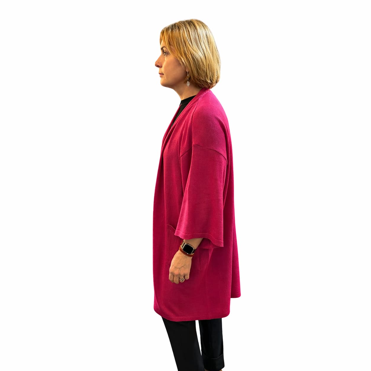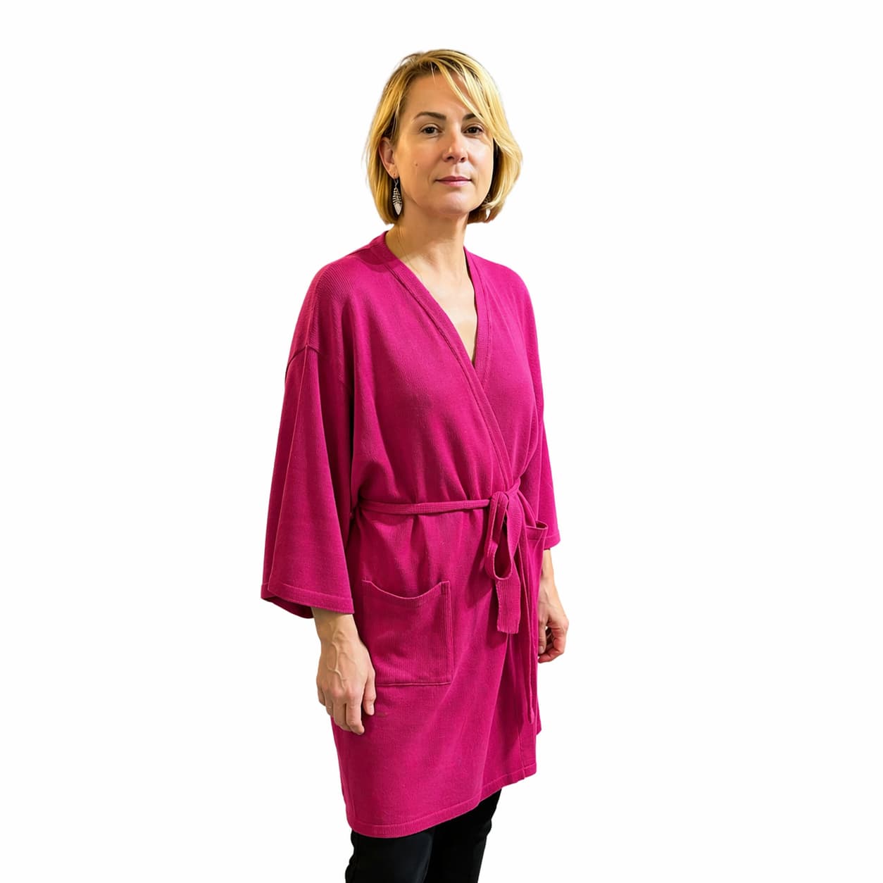 Valent pikem kimono – Roosa – Minimalistlik ja kaasaegne kimono-stiilis kardigan, mis ühendab mugavuse ja stiili. Selle avar, veidi oversize lõige langeb kehal loomulikult ja loob pingutuseta elegantse silueti. Vööga kinnitatav disain rõhutab taljejoont ning võimaldab kanda kardigani nii vabalt kui ka struktureeritult.