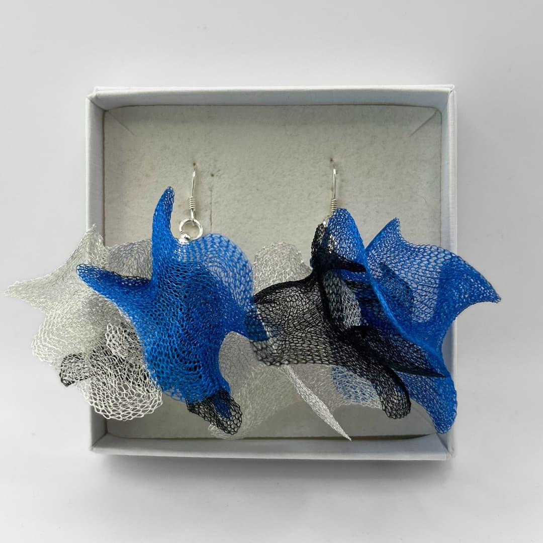 Veil of Dreams kõrvarõngad – Sini-must-valge 01 – Need kõrvarõngad on inspireeritud liikumisest, õhust ja looduslikest vormidest.