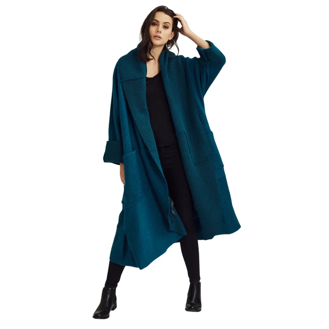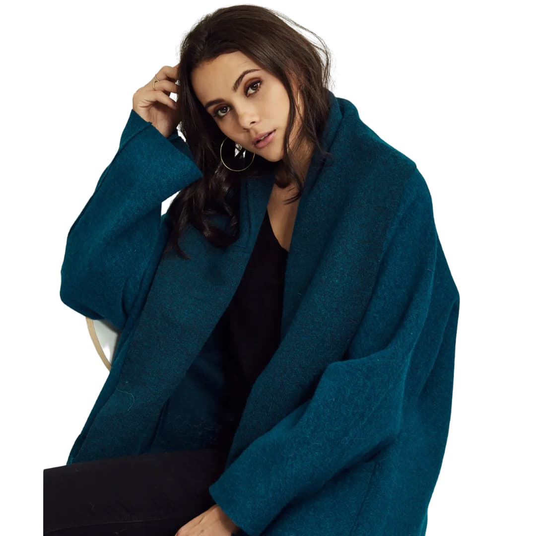 Villane pikk jakk – Sinine – See pilkupüüdev villane mantel-jakk on ideaalne kaaslane kevad- ja sügishooajaks. Sügavsinine toon lisab igale outfitile iseloomu ja soojust, samas kui minimalistlik lõige hoiab üldmulje modernse ja ajatuna.