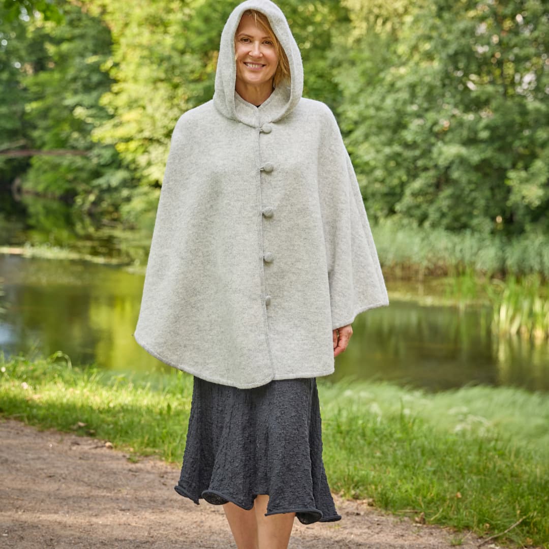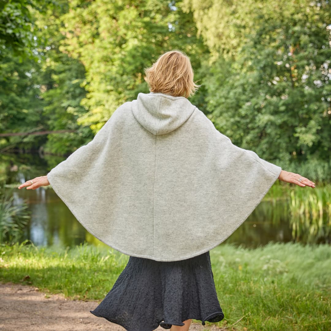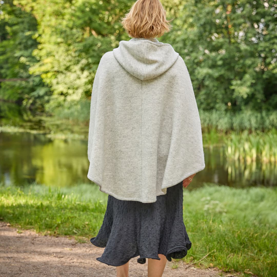 Villane pontšo – Hall kapuutsiga – 100% villane pontšo – valmistatud Eestis.