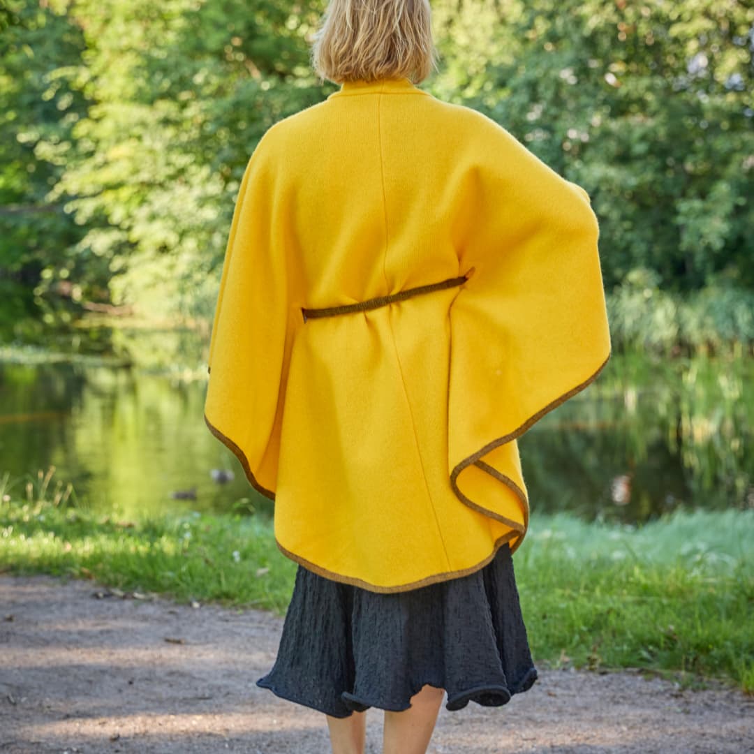 Villane pontšo – Kollane vööga – 100% villane pontšo – valmistatud Eestis.