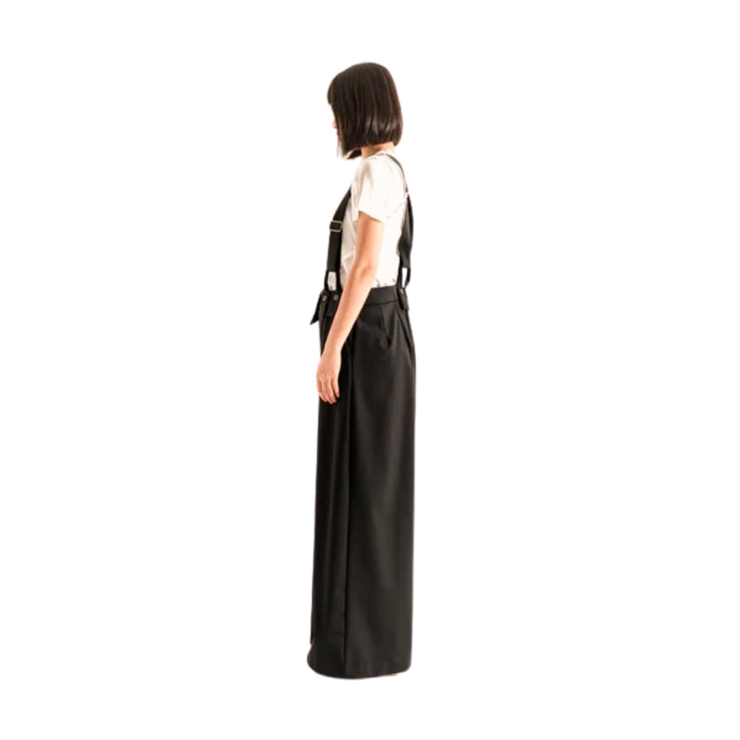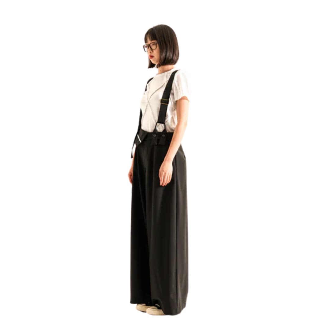 Pükstel on klassikaline nööp- ja lukukinnitus vöökohal ning eemaldatavad traksid, mis on kinnitatud nööpidega, lisades rõivale modernse ja mängulise ilme.